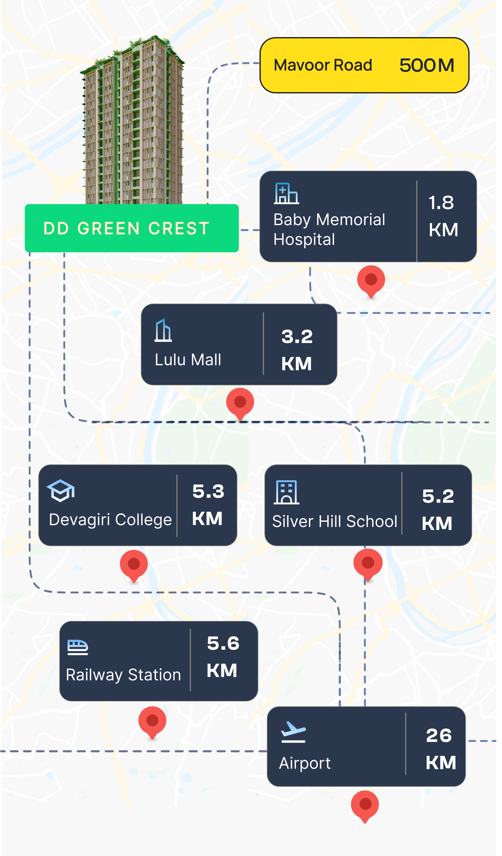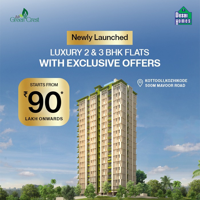 Experience luxury at DD Green Crest by Desai Homes, where style meets comfort. Our premium 2 & 3 BHK apartments for sale in Calicut offer modern amenities, exquisite interiors, and a serene lifestyle, all within prime locations. Close to schools, hospitals, and transit, these luxury flats in Calicut are designed for those who value convenience and elegance. Buy your dream apartment in Calicut today and step into refined living!