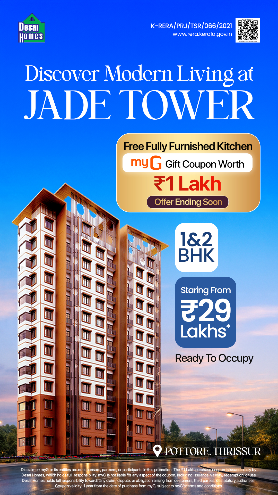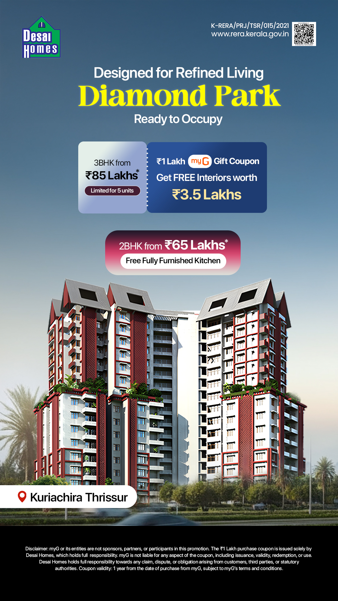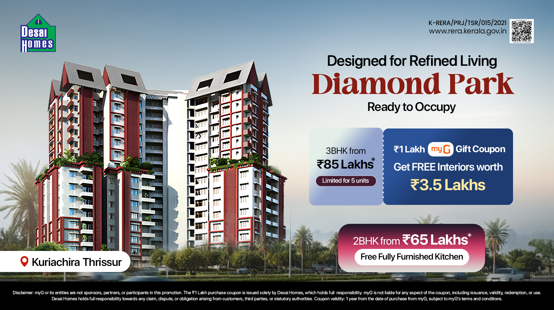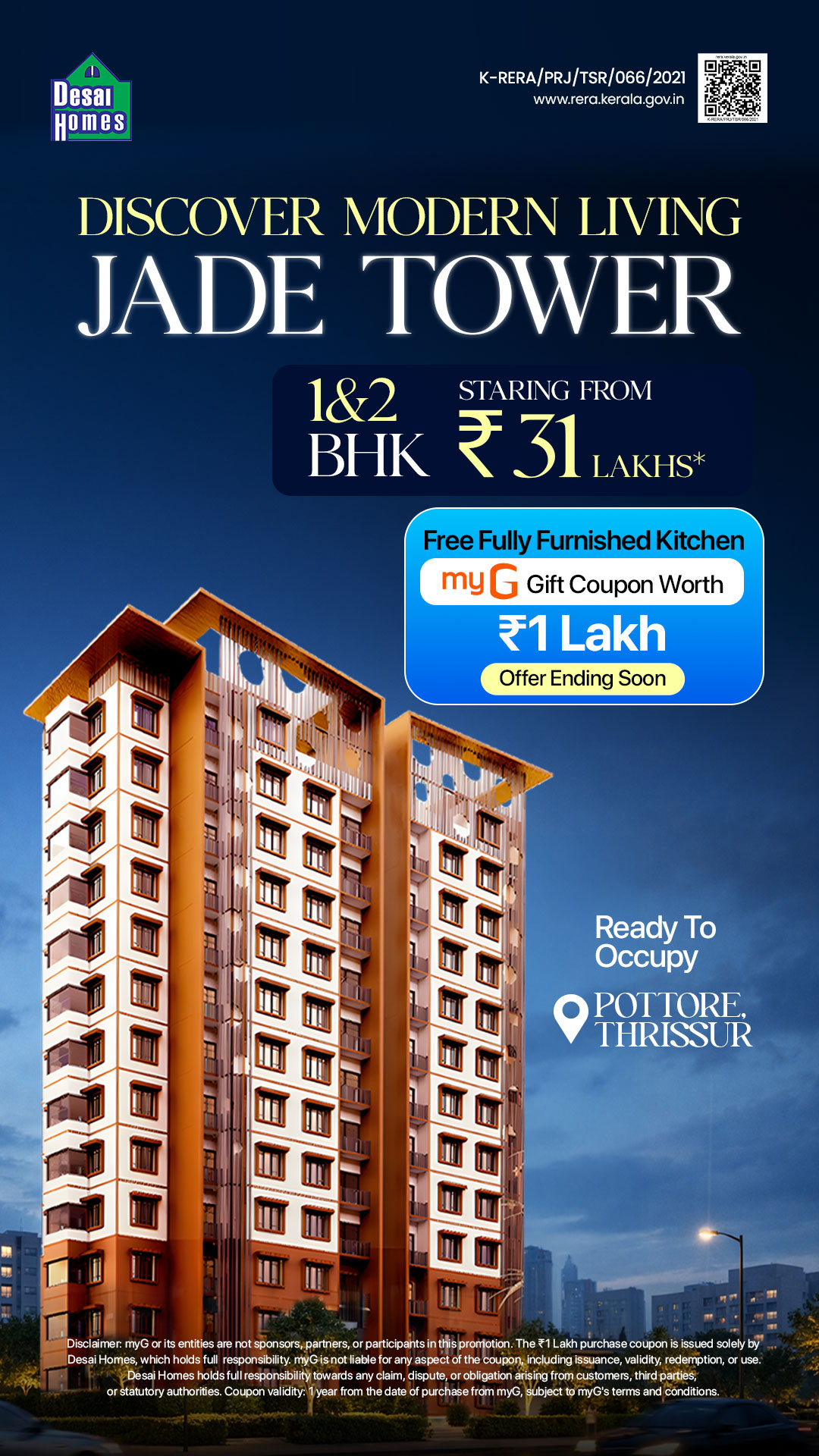 Desai Homes is your best option if you're looking to buy a flat in Thrissur Town. Because we built homes for people where they feel free to be who they are. We build apartments in Thrissur to cater to the preferences of all residents, creating a haven for each individual. At Desai Homes, we strive to meet the needs of every customer who comes to us. According to the client's requirements, we offer a diverse range of affordable and elite housing options like 1,2 & 3 BHK Flats in Thrissur, budget flats in Thrissur etc.