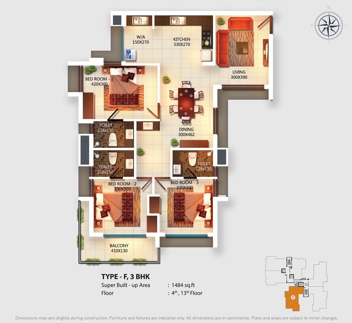 Fully Vitrified tiles except toilet and balconies.